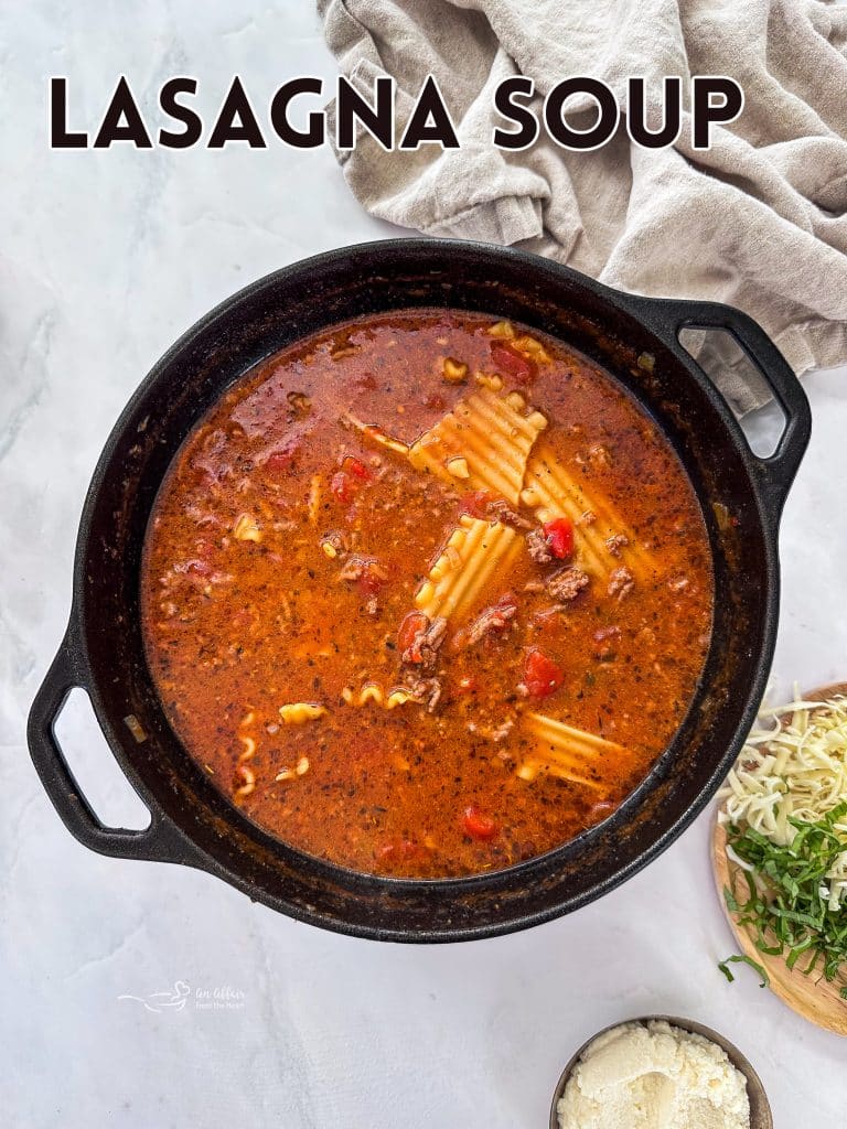 This recipe for lasagna soup has been on my website since 2012. From the moment I made it the first time, it became one of those dependable family dinners that everyone loved, and a great way for me to use up leftover noodles and easy pantry ingredients when I was scrambling to get dinner on the table for my family of 6.