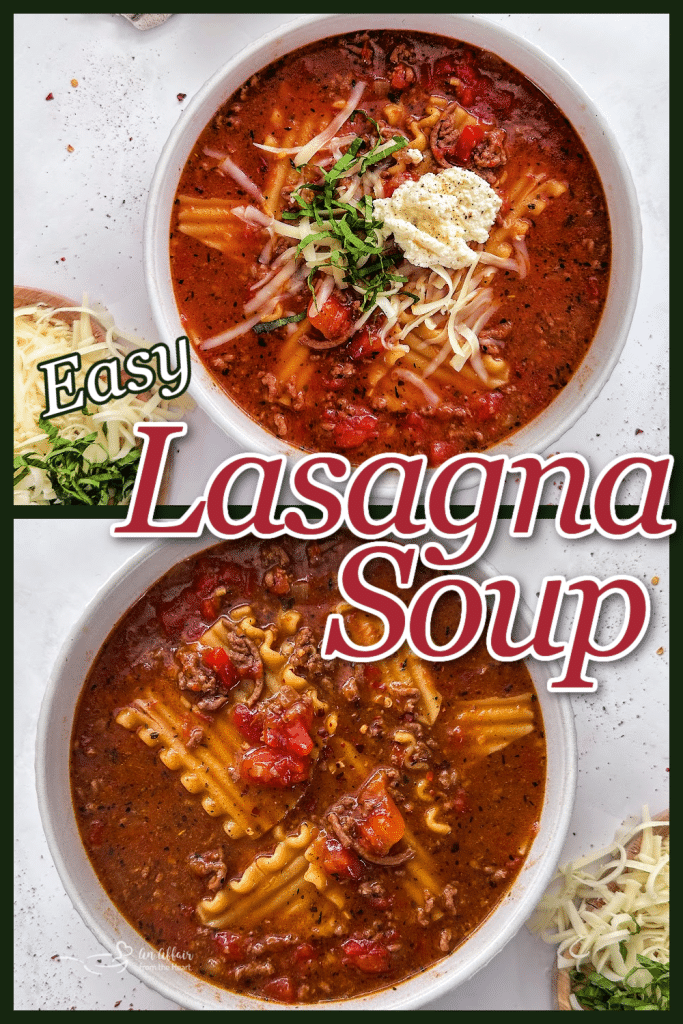 If you can’t wait to try my one pot lasagna soup recipe, make sure you can find it! Pin it to your favorite Pinterest recipe board before you go.