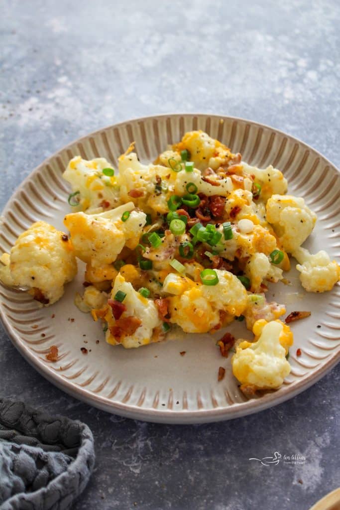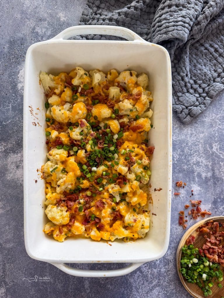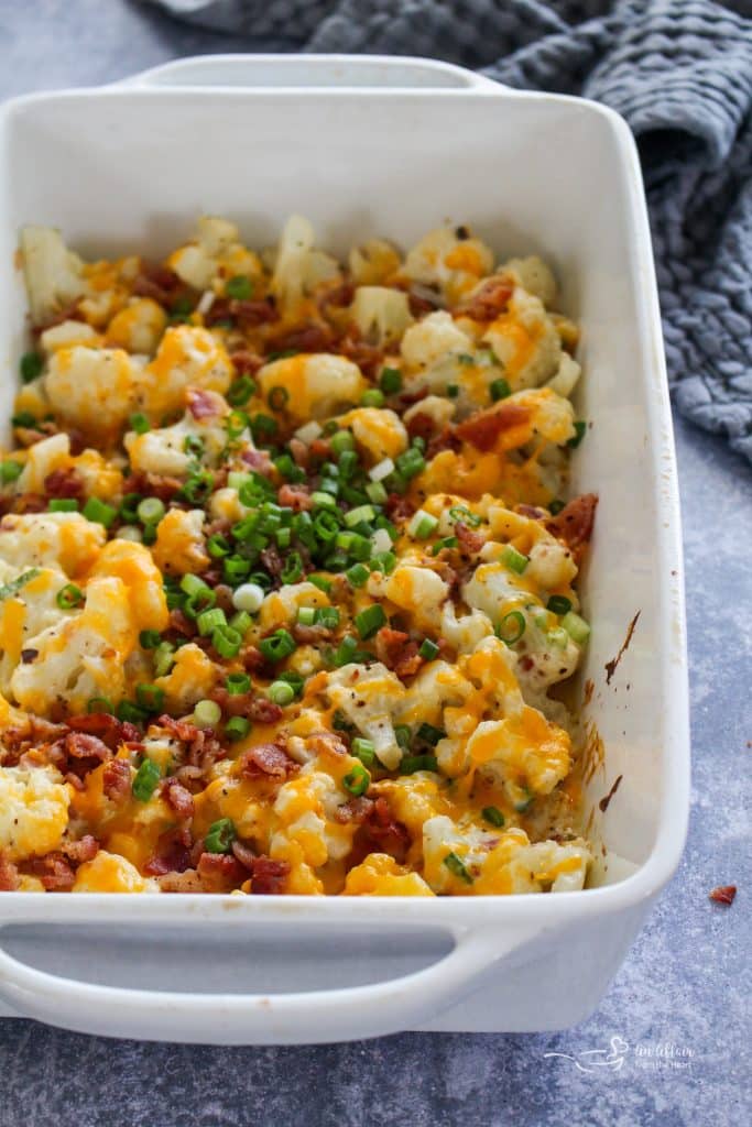 Yes! Both work well in this casserole. Fresh cauliflower holds its texture best, but frozen cauliflower is a great shortcut. Just cook it according to the package directions and drain it well so the casserole doesn’t become watery. - Is loaded cauliflower casserole keto?