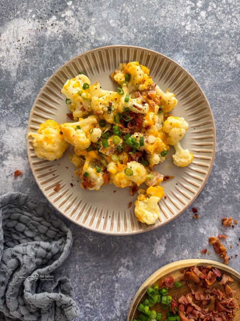 Yes, this recipe is naturally keto-friendly and low carb. Cauliflower replaces potatoes while still giving you that comforting loaded baked potato flavor thanks to the cheddar cheese, bacon, and sour cream. - Can this be served as a main dish?