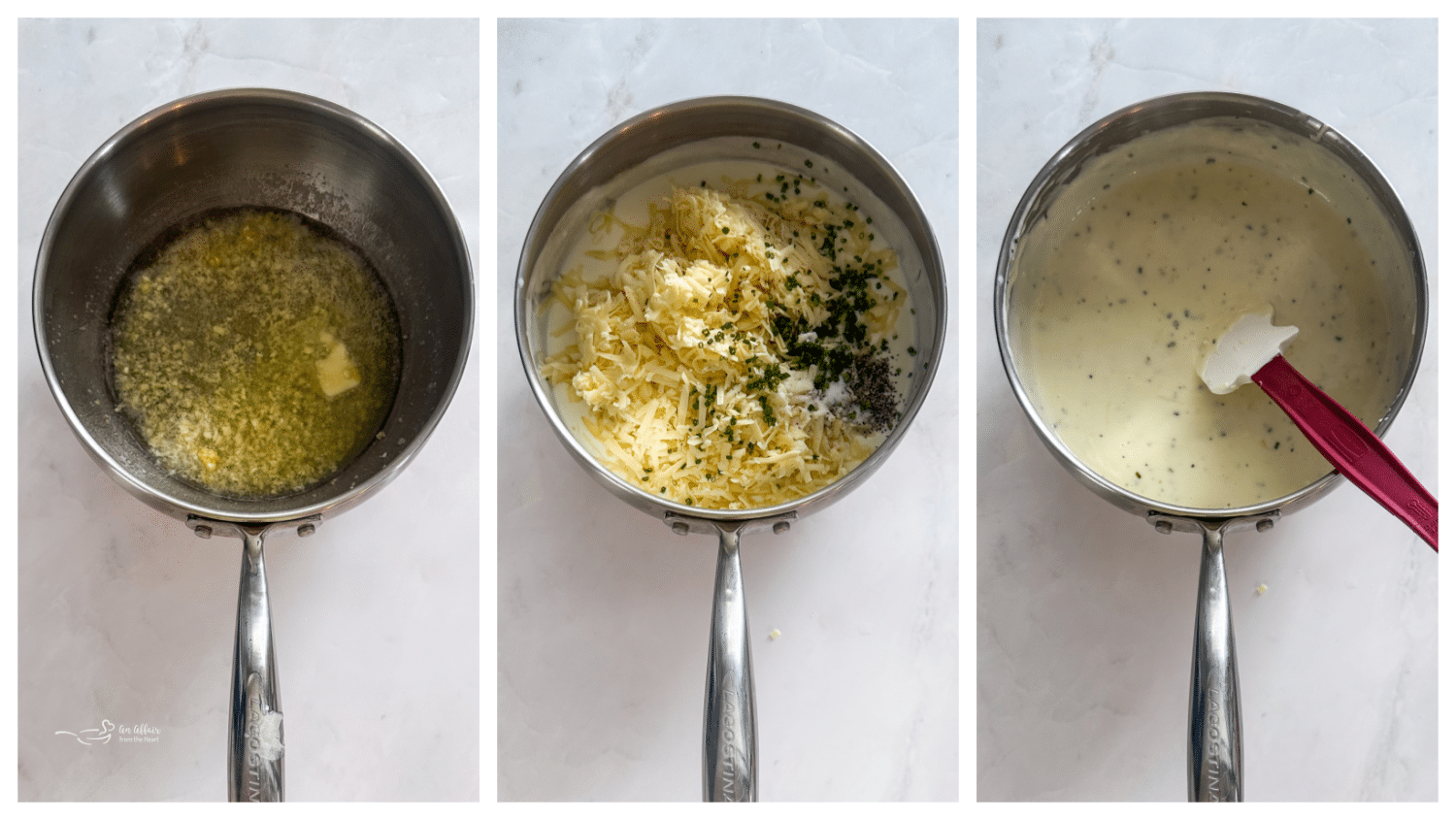 In the same pot, melt half of the butter over medium-low heat and add the garlic. Whisk in the flour to create a roux, cooking gently while whisking so it stays smooth. Add the lemon juice and slowly whisk in the Half & Half, continuing to whisk until the mixture thickens and becomes creamy.
