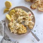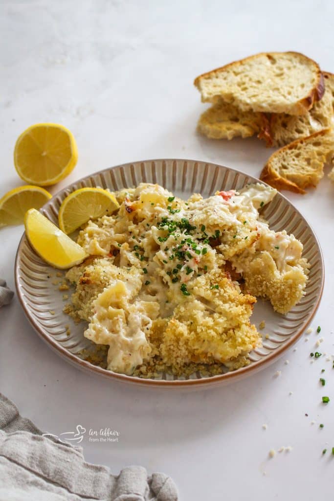 Because this contains seafood and a cream-based sauce, freezing isn’t recommended. The texture of both the crab and the sauce can change once thawed.