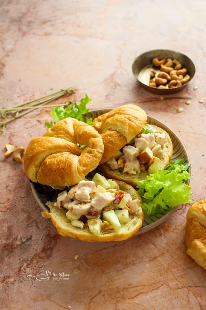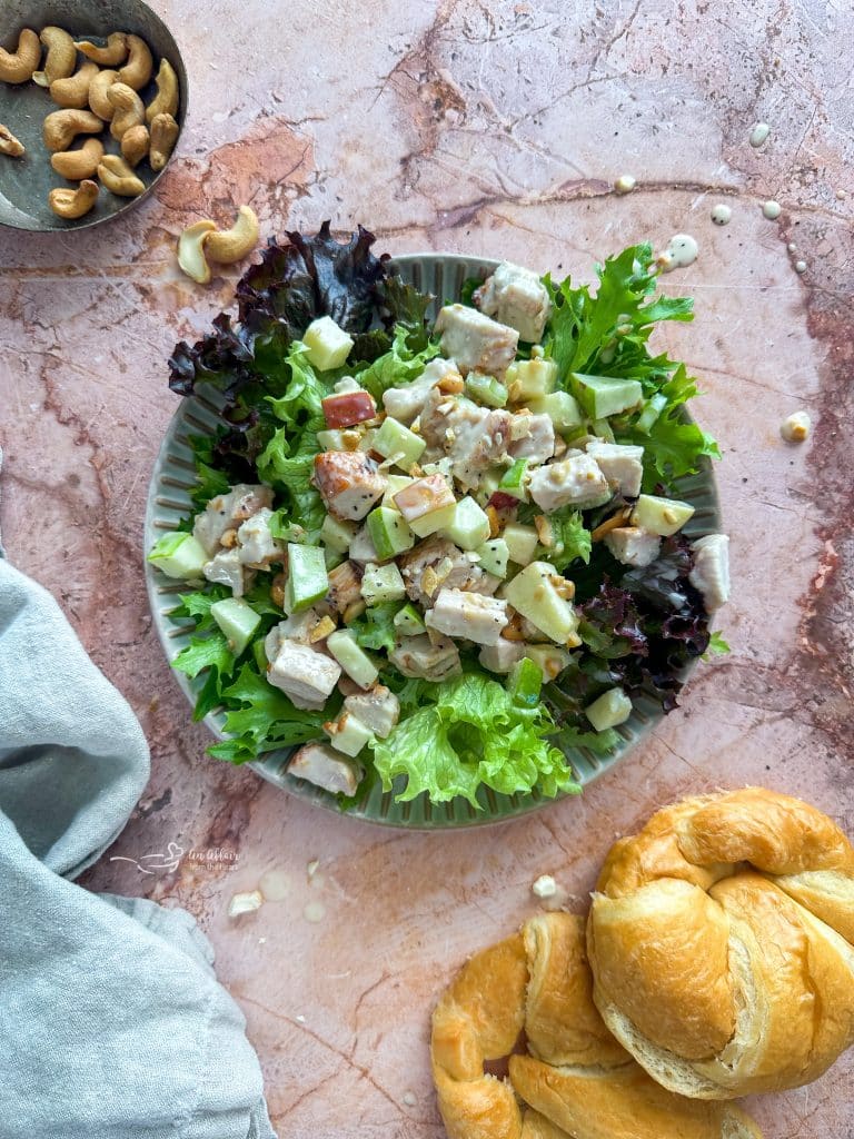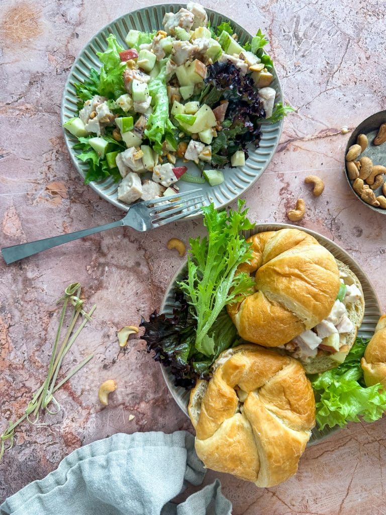 A wonderful twist on your everyday classic chicken salad. This Apple Chicken Salad is made with crunchy apples and toasted cashews and then tossed in a sweet honey dressing for a mouthful of flavors and textures. This chicken salad with apples is an easy recipe that makes for a delicious lunch or light dinner.