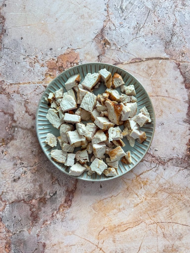 - Cut chicken into bite-sized pieces
