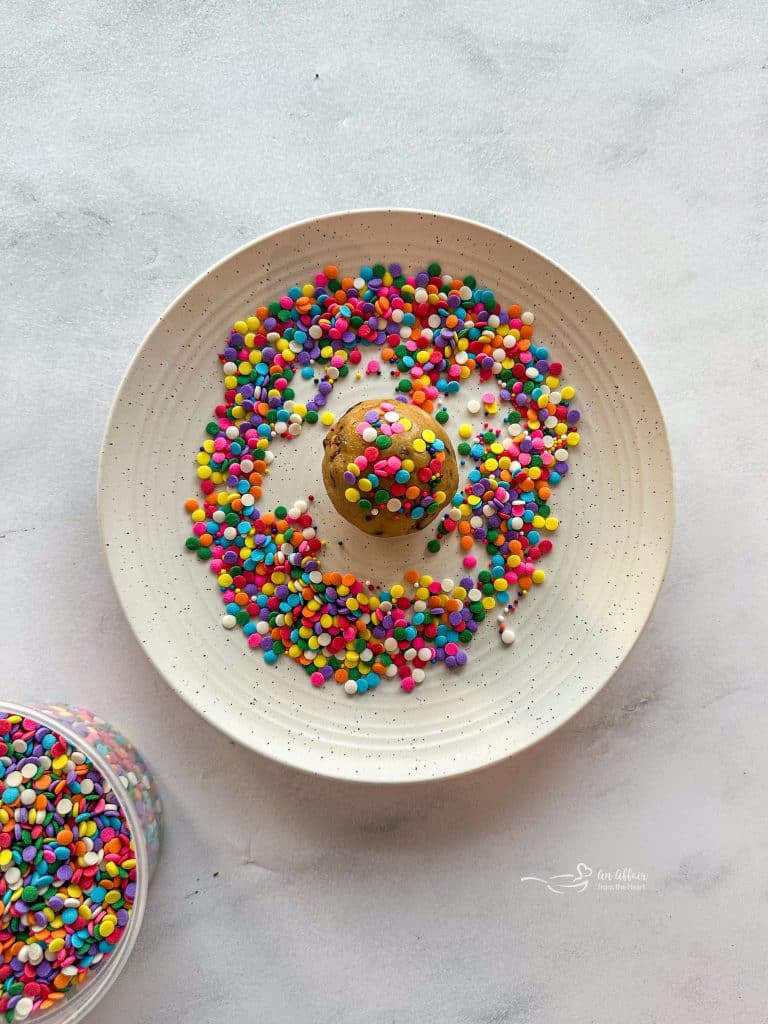 - Press the tops of the cookies into a plate of sprinkles.