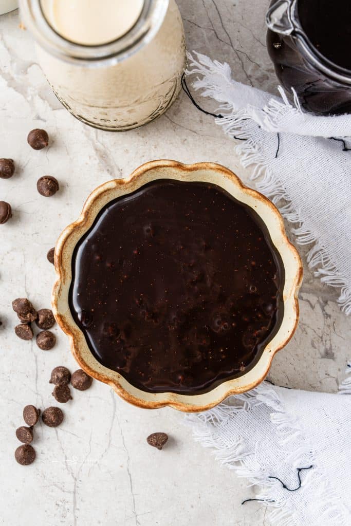 Pour it directly over brownies, cake, or your dessert of choice. Spread gently if needed, then refrigerate until it sets into a smooth, fudgy topping.