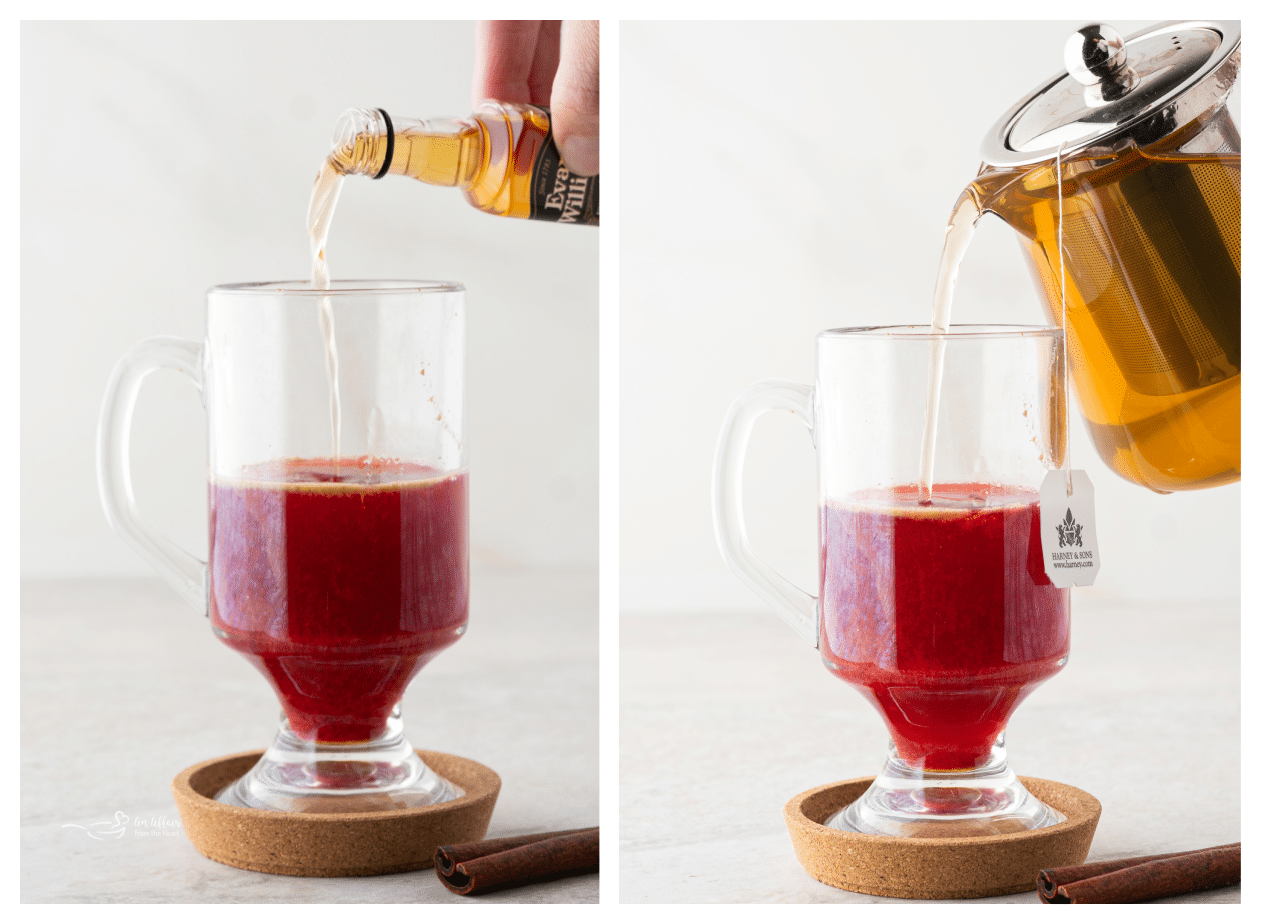 • Add the spirit (or not!): Stir in whiskey or bourbon (or chamomile tea if making a mocktail).