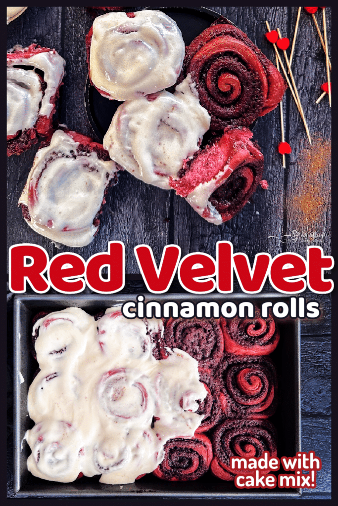 If you love this recipe for Red Velvet Cinnamon Rolls made with cake mix, keep it where you can find it! Pin it to your favorite Pinterest recipe board before you go.