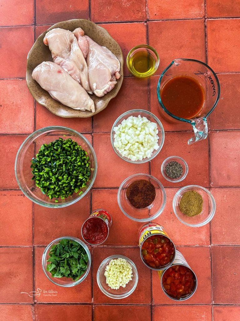 Transfer vegetables and chicken to your crock pot. Add chicken stock, tomatoes, enchilada sauce, tomato paste, and seasonings. Cook on low heat 6-8 hours until chicken reaches 165°F.