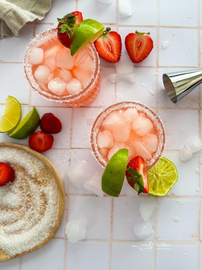 • Strawberries and Limes – fresh strawberries and limes are perfect for garnish and adding a colorful touch when serving.