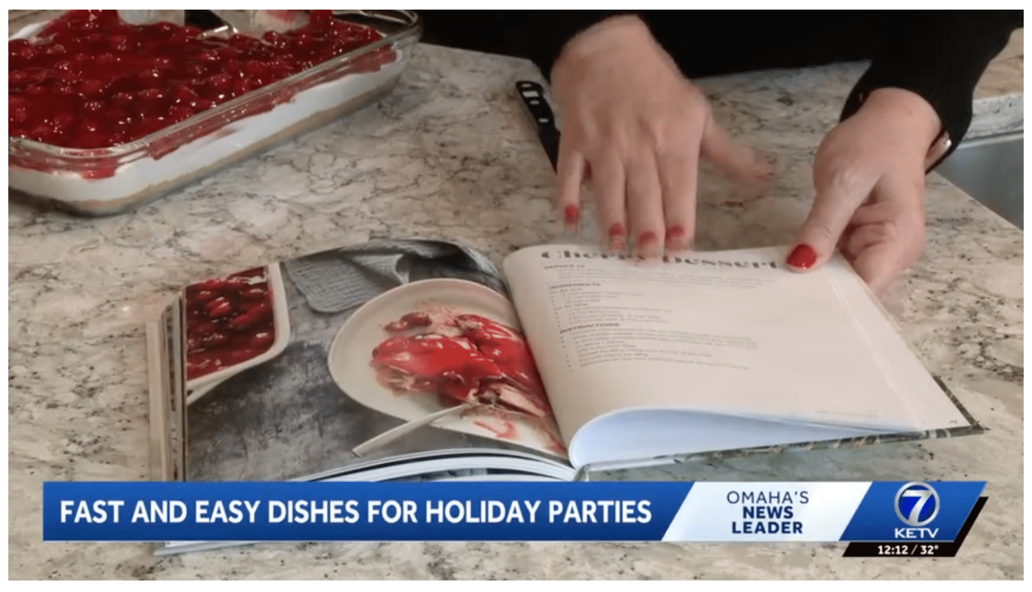 I was honored to be interviewed by KETV Newswatch 7 Omaha with Waverle Monroe, where I had the opportunity to share my story, my love of home cooking, and a glimpse behind the scenes of An Affair from the Heart. The interview came together quickly, and even though I wasn’t feeling my best that day (thanks to a lingering sinus infection!) I was incredibly grateful for the chance to cook alongside Waverle and make a no-bake cherry dessert from my cookbook, Savor It, while sharing this work with a wider audience.