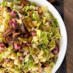 All the flavors of a classic deli Reuben in a lighter bowl! This Reuben Chop Salad is loaded with corned beef, Swiss cheese, tangy sauerkraut, sweet pickles, homemade rye croutons, and creamy Thousand Island dressing. Perfect for St. Patrick’s Day and beyond!